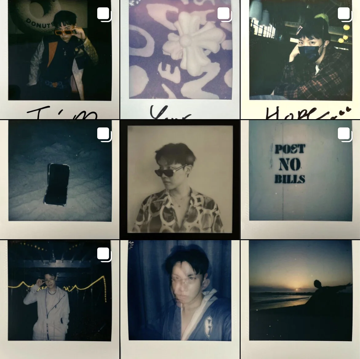 I lol’d seeing Hobi’s grid, with the cut-off “I’m your hope.” It’s very him—super aesthetic, but still makes you laugh with something unexpected. He doesn’t delete his mistakes. You get the feeling that you too can bare soft parts of yourself without burning out.