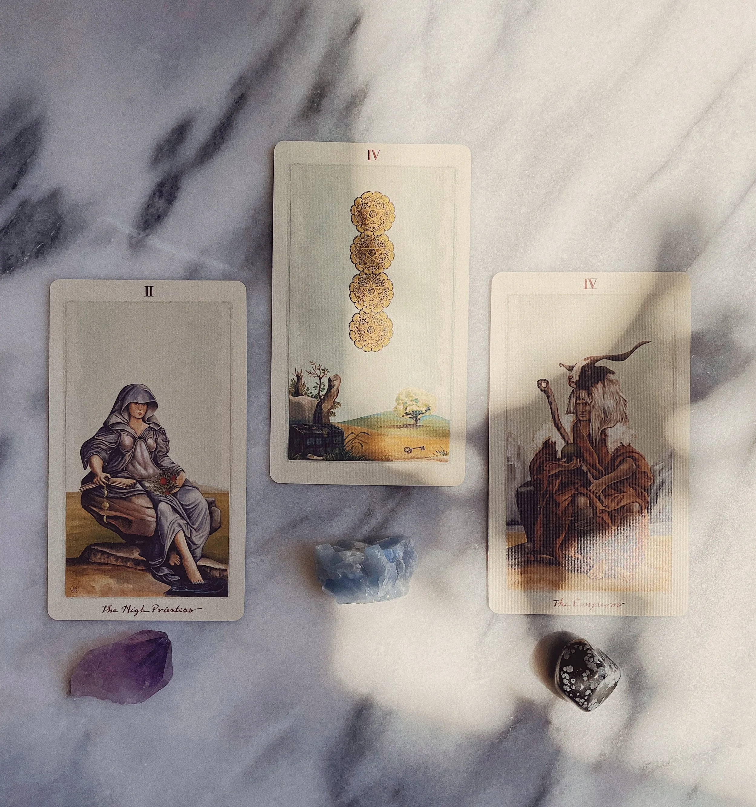 With my anxiety spiking at an all-time high, I needed a way to slow down, get deeply present, and embody some High Priestess energy. In my witchy studies, I ordered my first tarot deck: Tarot of the Divine by Yoshi Yoshitani. It unfortunately ended up taking 3 months to be delivered by a local, closing bookstore lol.