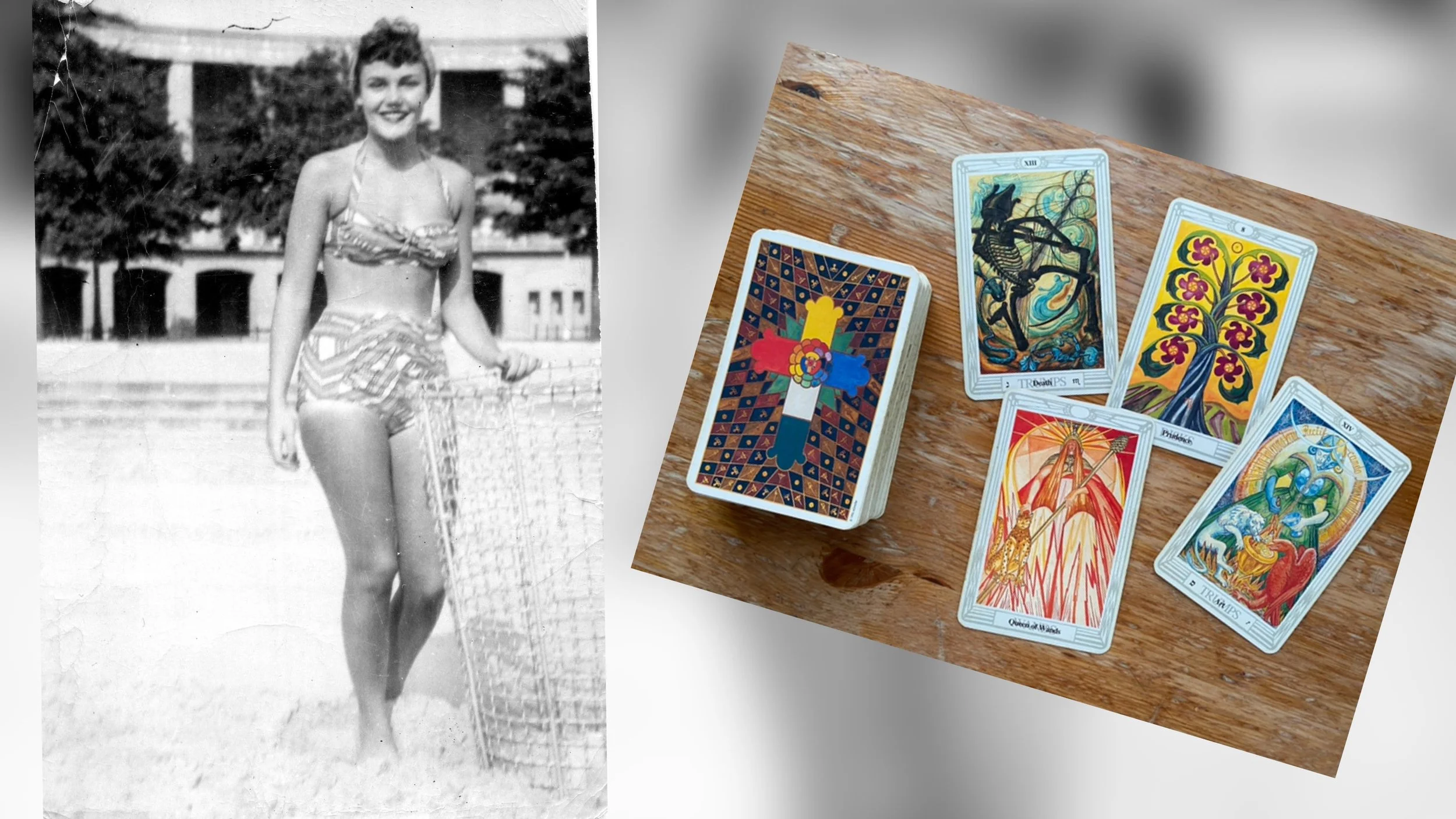 My grandma’s cousin Jeanette & my first tarot deck, The Book of Thoth