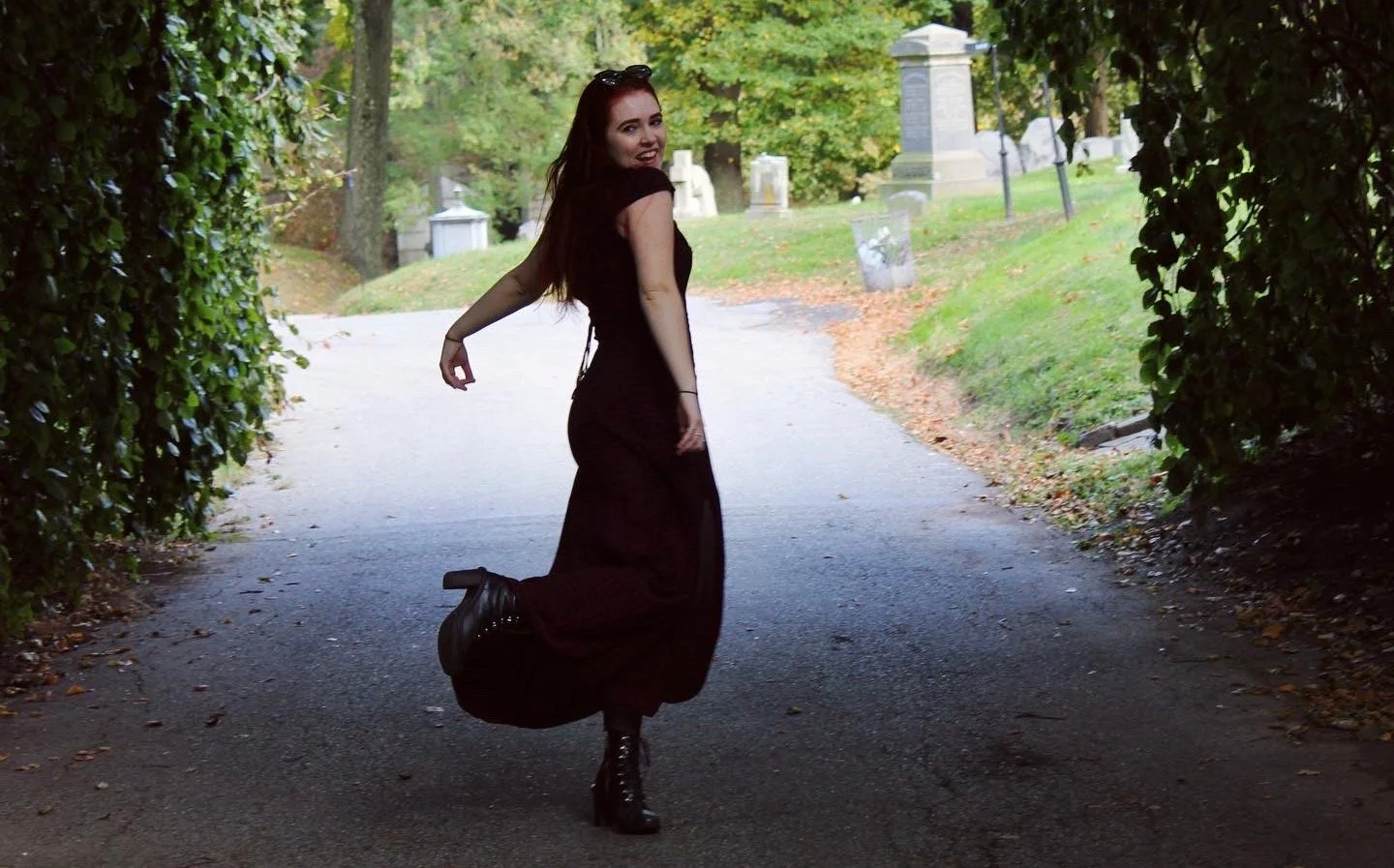 In my witchy element, wandering through a cemetery.